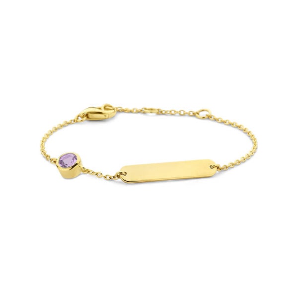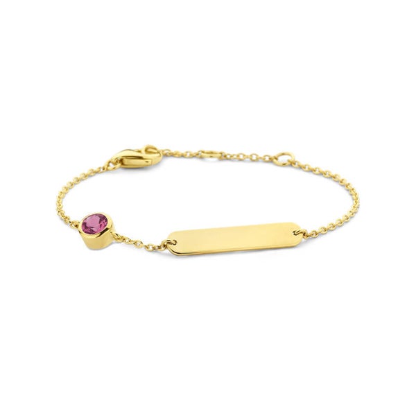 graveerarmband plaat 4,0 mm met geboortesteen 14k goud